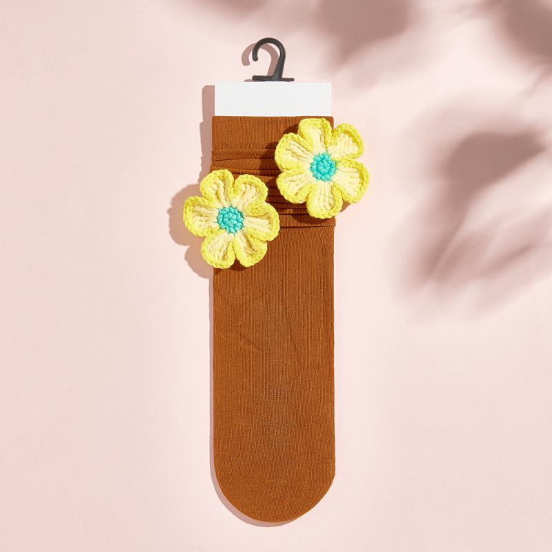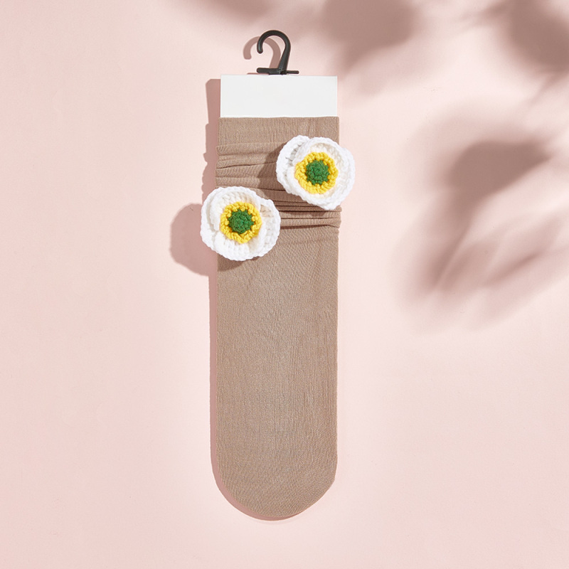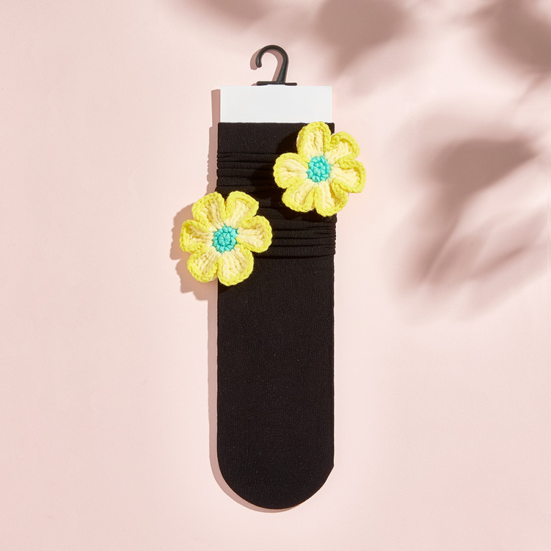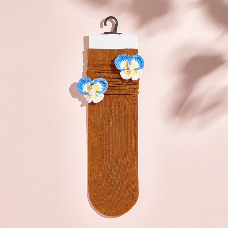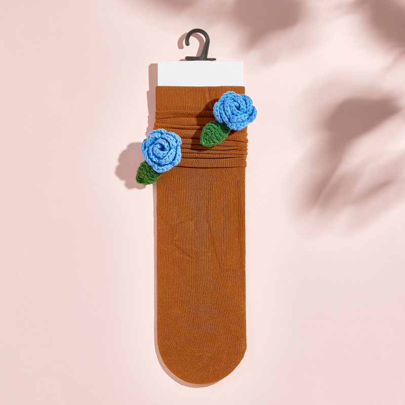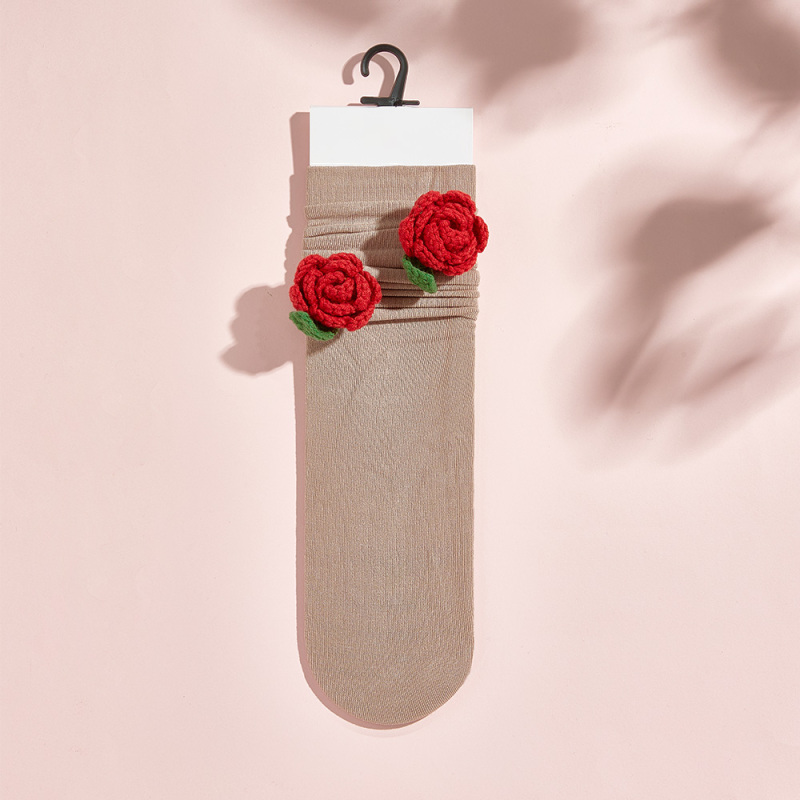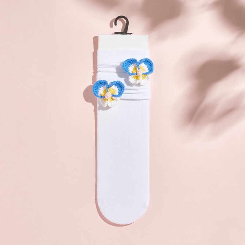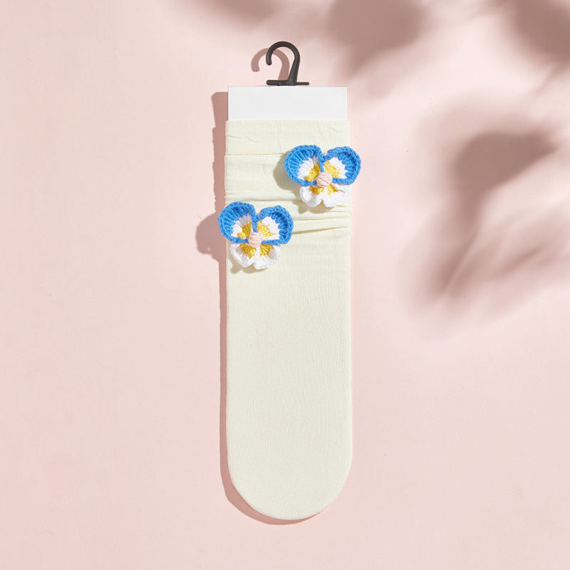 Gestrickte Socken Mit Obst Und Blumen In Verschiedenen Stilen. Bunte Socken