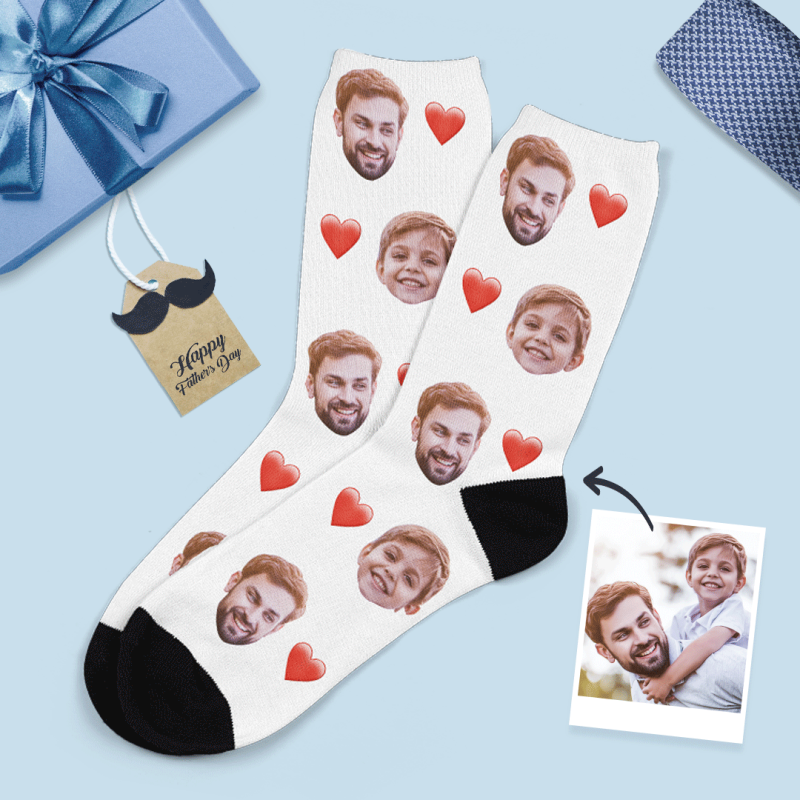 Personalisierte Herz Socken Mit Gesicht - Gesichtsocken Vatertagsgeschenke
