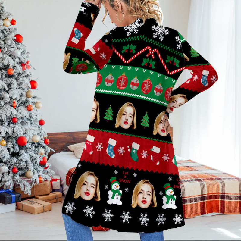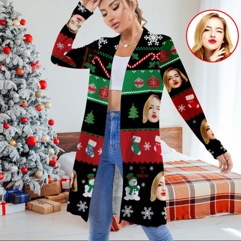 Personalisierte Weihnachts-cardigan Für Damen, Vorne Offen, Langärmelig, Für Weihnachtsgeschenke