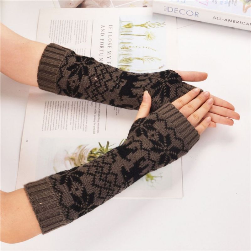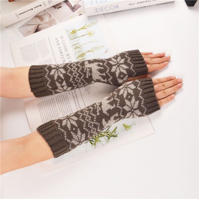 Warme Handschuhe Für Den Winter, Süßer Rehkitz, Gestrickt, Mittellange Armabdeckung, Fingerlos