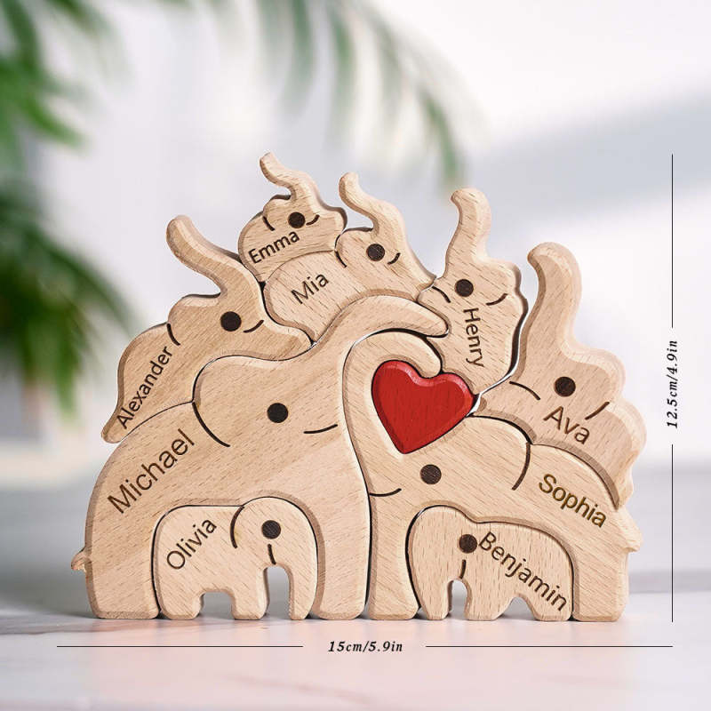 Holz-familien-elefant-puzzle Mit Individuellen Namen, Heimdekoration, Einweihungsgeschenke