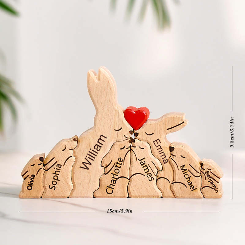 Hölzernes Kaninchen-familienpuzzle Mit Individuellen Namen, Einweihungsgeschenke, Heimdekoration